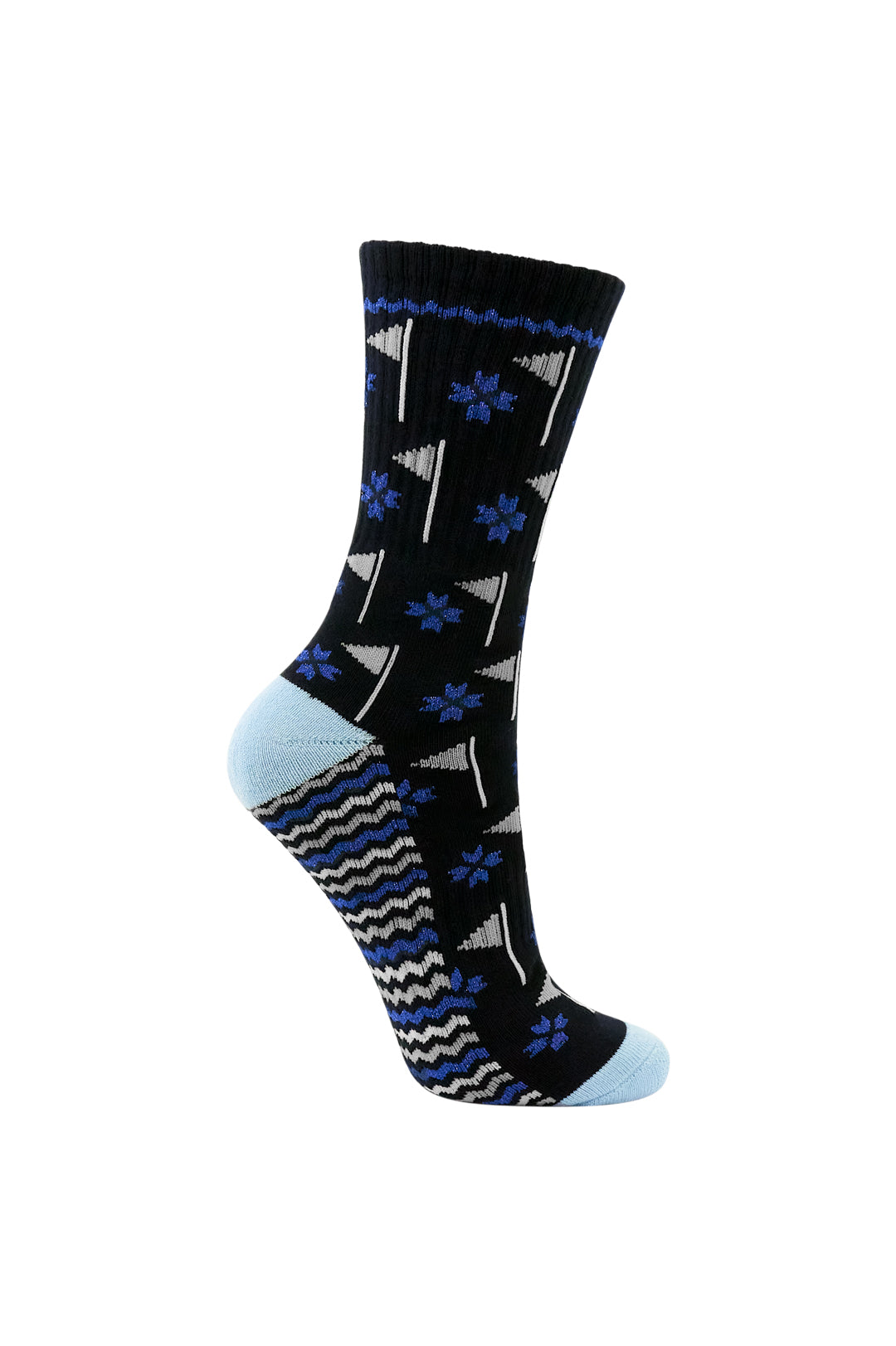 Our Ladies Golf Crew Sock has a trendy golf flag design with lurex stripe detailing on the sole. This long golf socks provide comfort and support as you perform on the golf course or when you are out & about on a cold winters day. Designed with a warm but soft fabric to prevent any unwanted distractions as you focus on your round. The socks provide cushioning in key areas for better flexibility for longer-lasting performance.