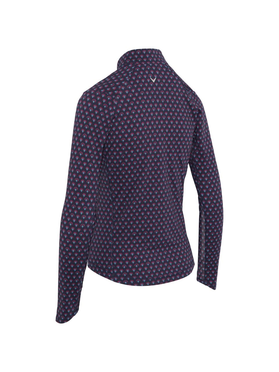 This Callaway women's long sleeve golf top makes a practical addition to your golf wear wardrobe. Stretch technology makes it easy to move in while sun protection blocks harsh UV rays during your game. This long sleeve golf shirt includes a quarter zipper closure, so you can customize your look while the geo print adds stylish flair.