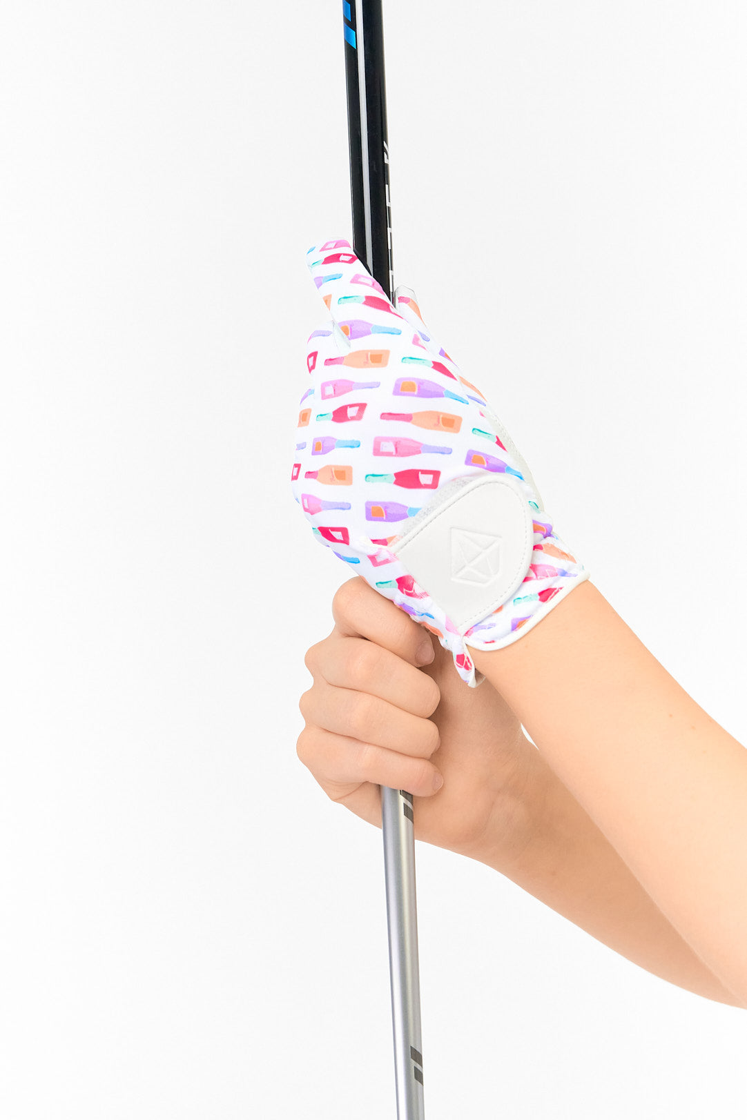This Fairway Fizz style is a fun, colourful bottle motif in bright pinks, oranges, and purples—playful, energetic, and perfect for on-course personality.
