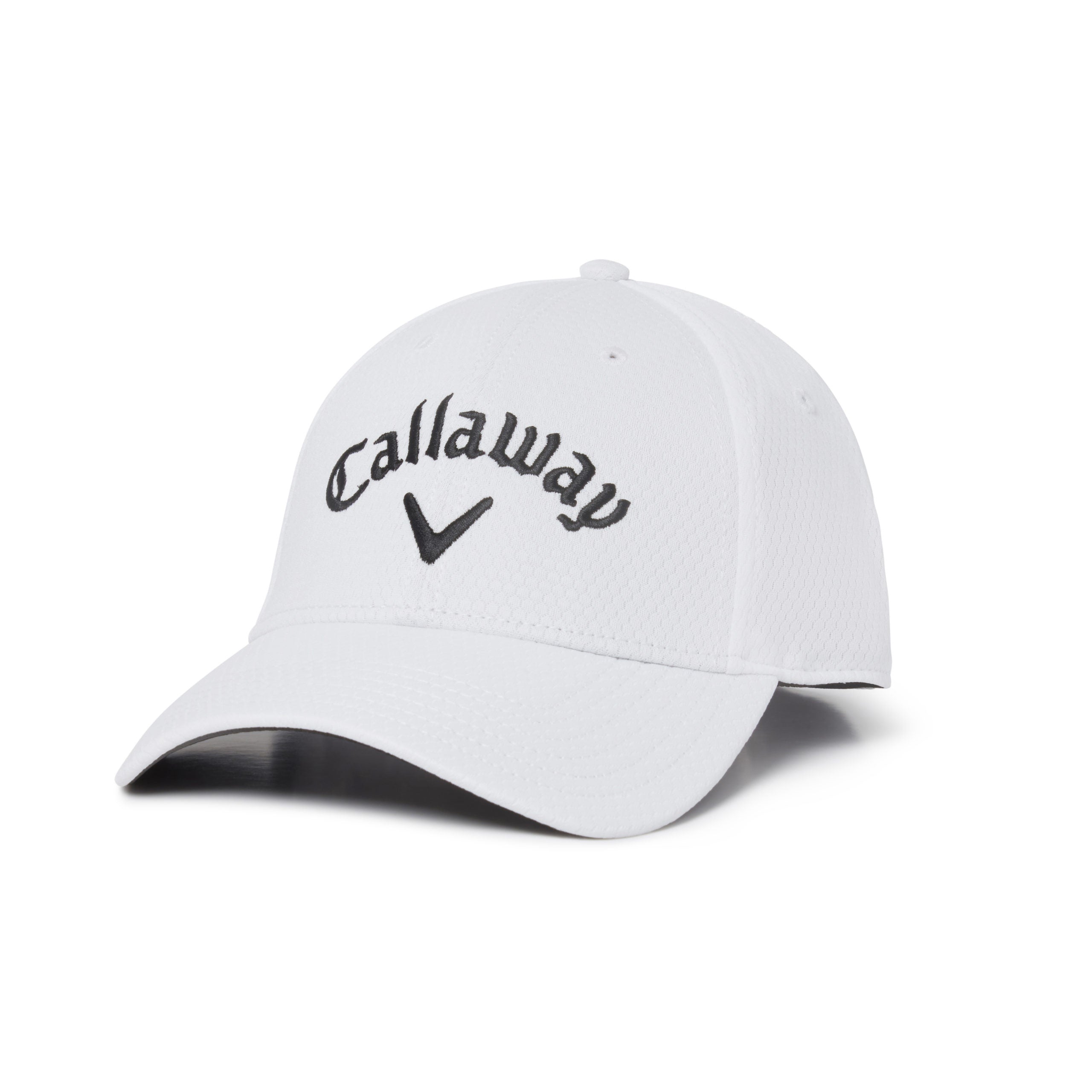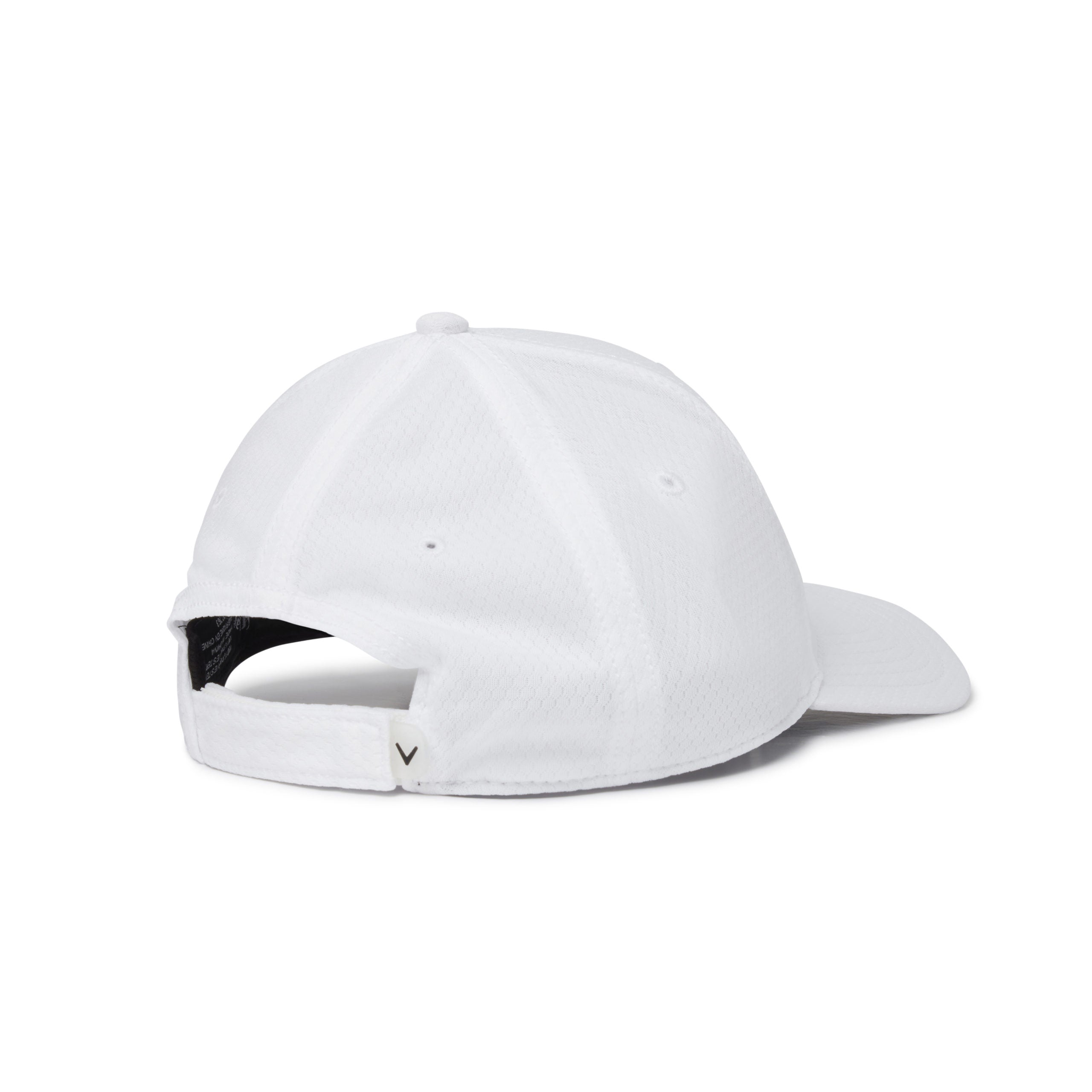 Keep the sun off the top of your head and out of your eyes with this classic women's golf hat from Callaway. Perfect for long rounds, the side crested hat offers a classic baseball cap design with an embroidered Callaway logo on the front. The golf hat for women is made from a durable and eye-catching textured fabric, with eyelets at the top for breathability and strap adjustment at the back to help ensure a comfortable fit.