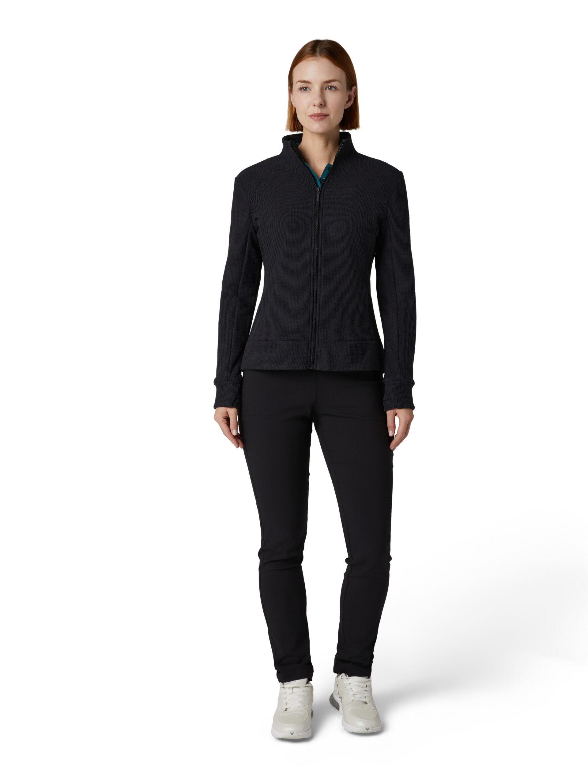 Callaway Ladies Golf Stretch Waffle Knit Fleece Jacket - Caviar