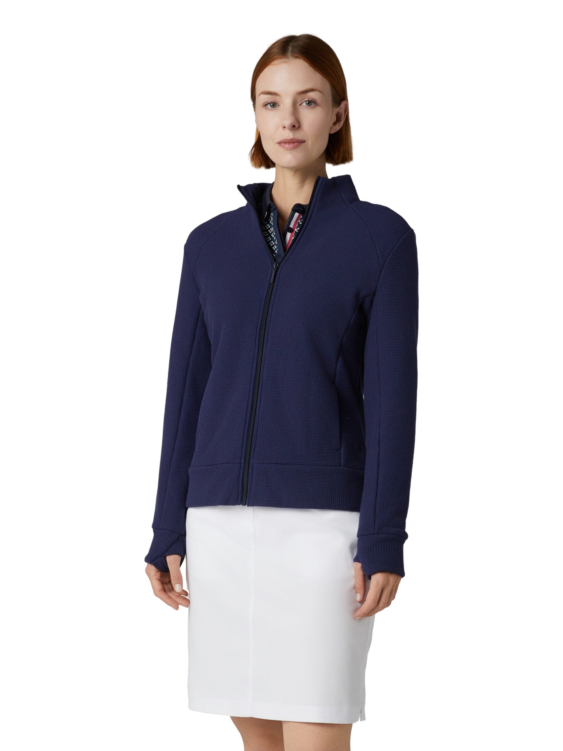 Combining style and function for the avid golfer, this women's golf jacket from Callaway Apparel is built for adaptable layering when cooler weather sets in.