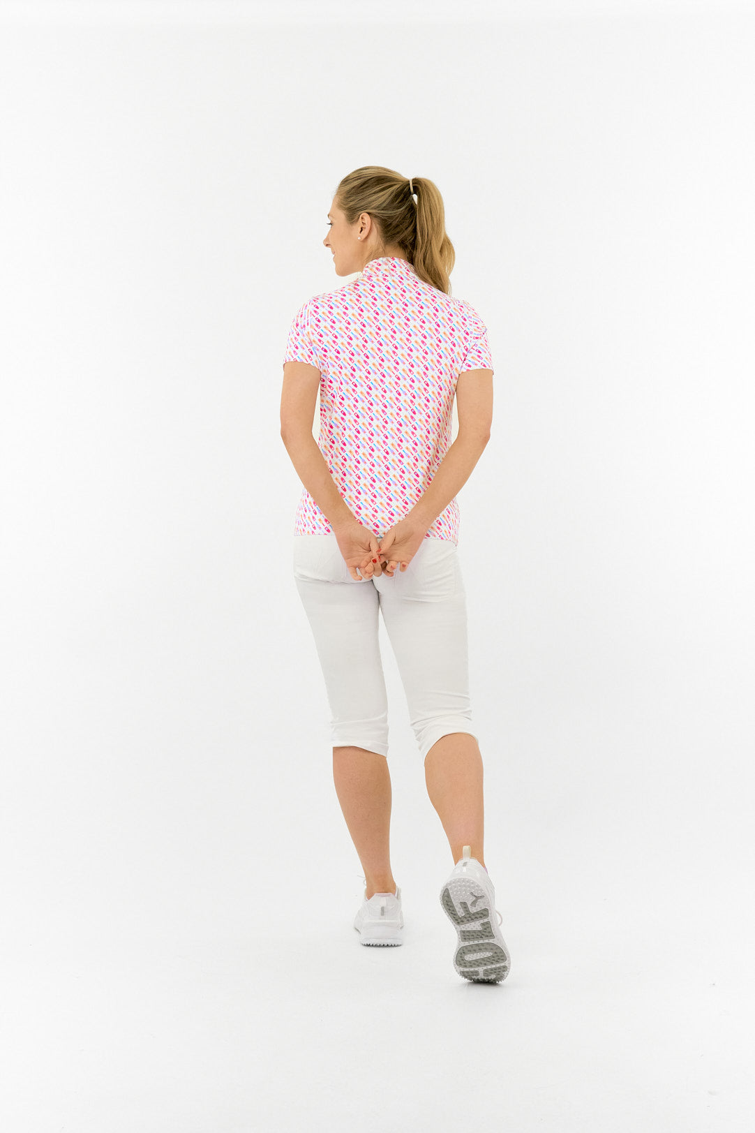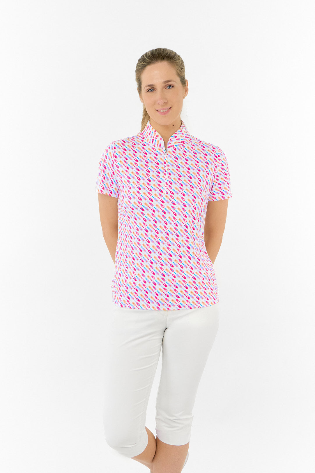 Crafted with 4-way performance stretch and moisture-wicking technology, the Ellen Ladies Short Sleeve Polo ensures you stay cool, dry, and restriction-free through all 18 holes.