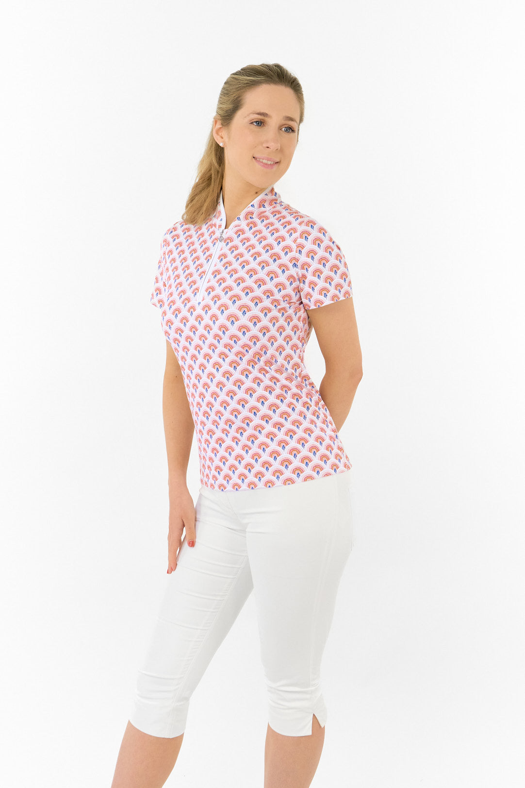 Crafted with 4-way performance stretch and moisture-wicking technology, the Ellen Ladies Short Sleeve Polo ensures you stay cool, dry, and restriction-free through all 18 holes.