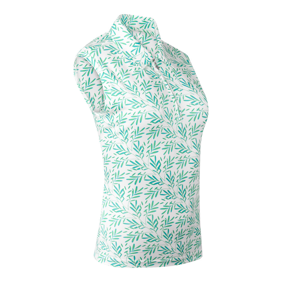 Amity Ladies Sleeveless Golf Shirt - Floating Palms Ivory