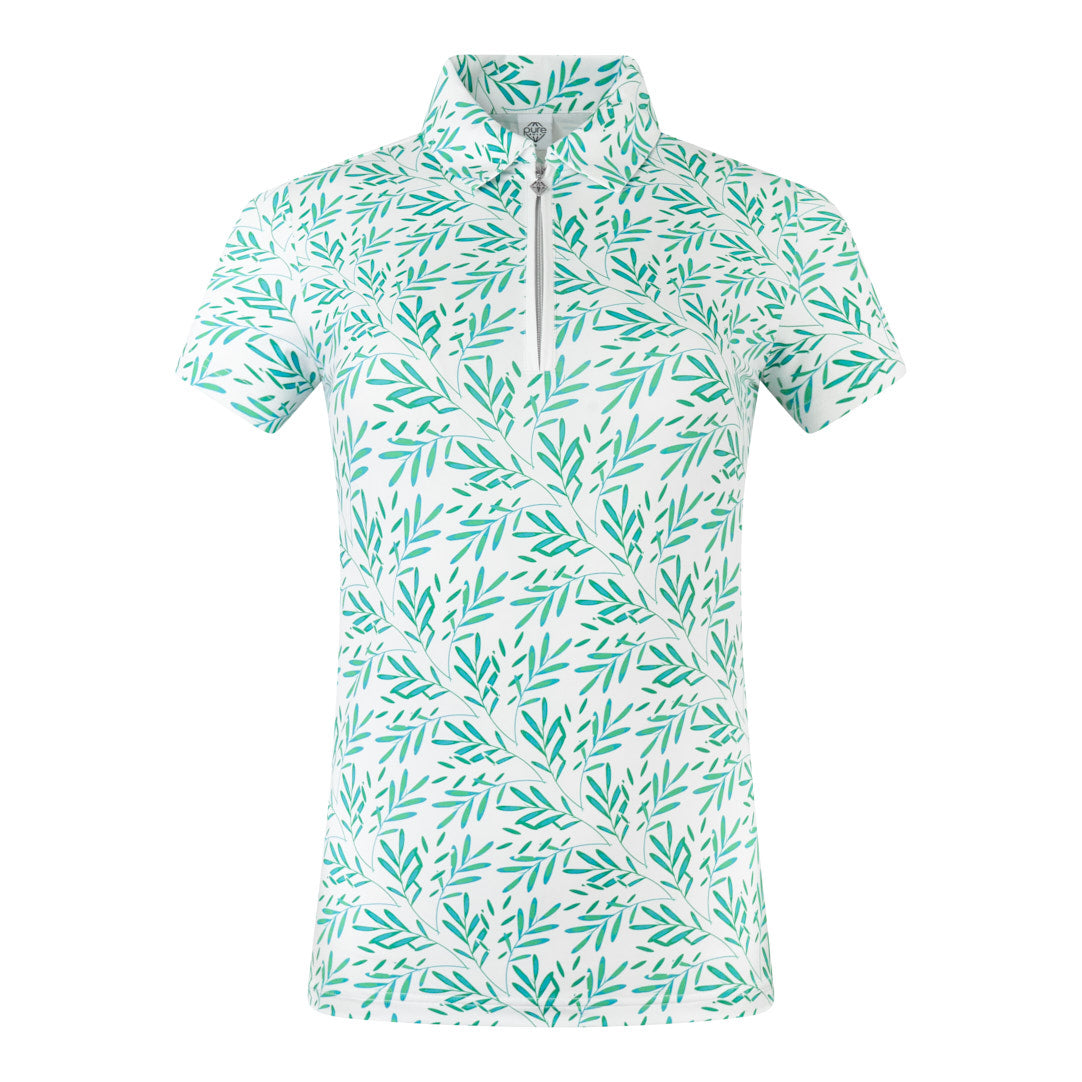 Elevate your golf apparel with the Amity Short Sleeve Ladies Golf Polo Shirt with Floating Palms design.