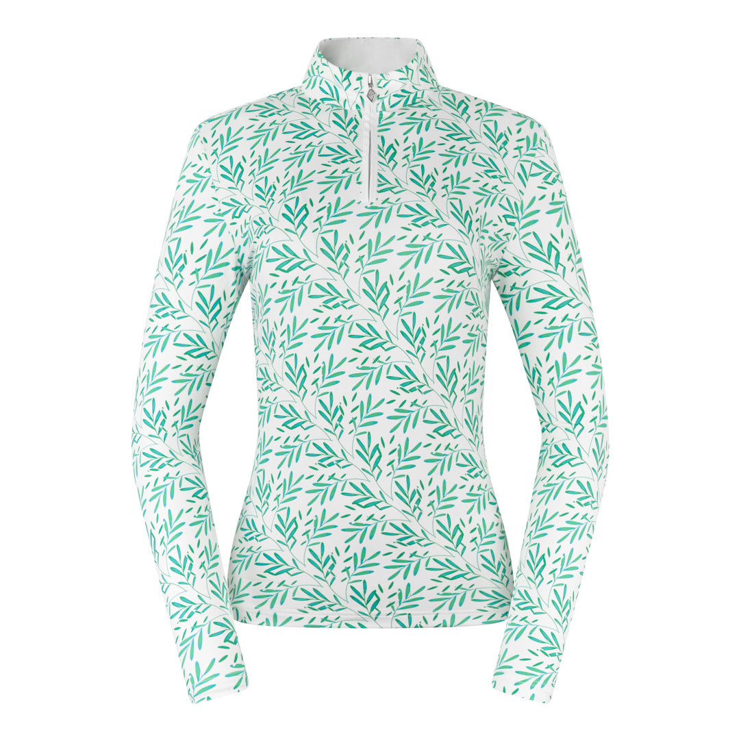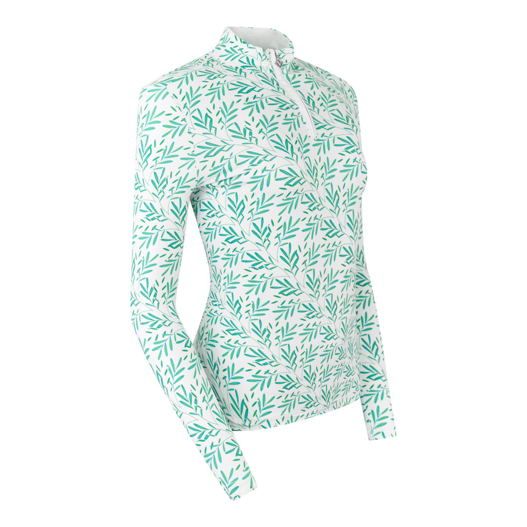 Serenity Long Sleeve Ladies Golf Zip Top - Floating Palms Ivory