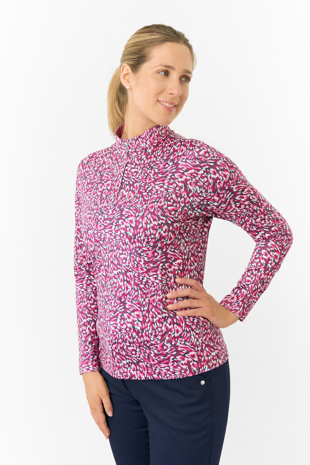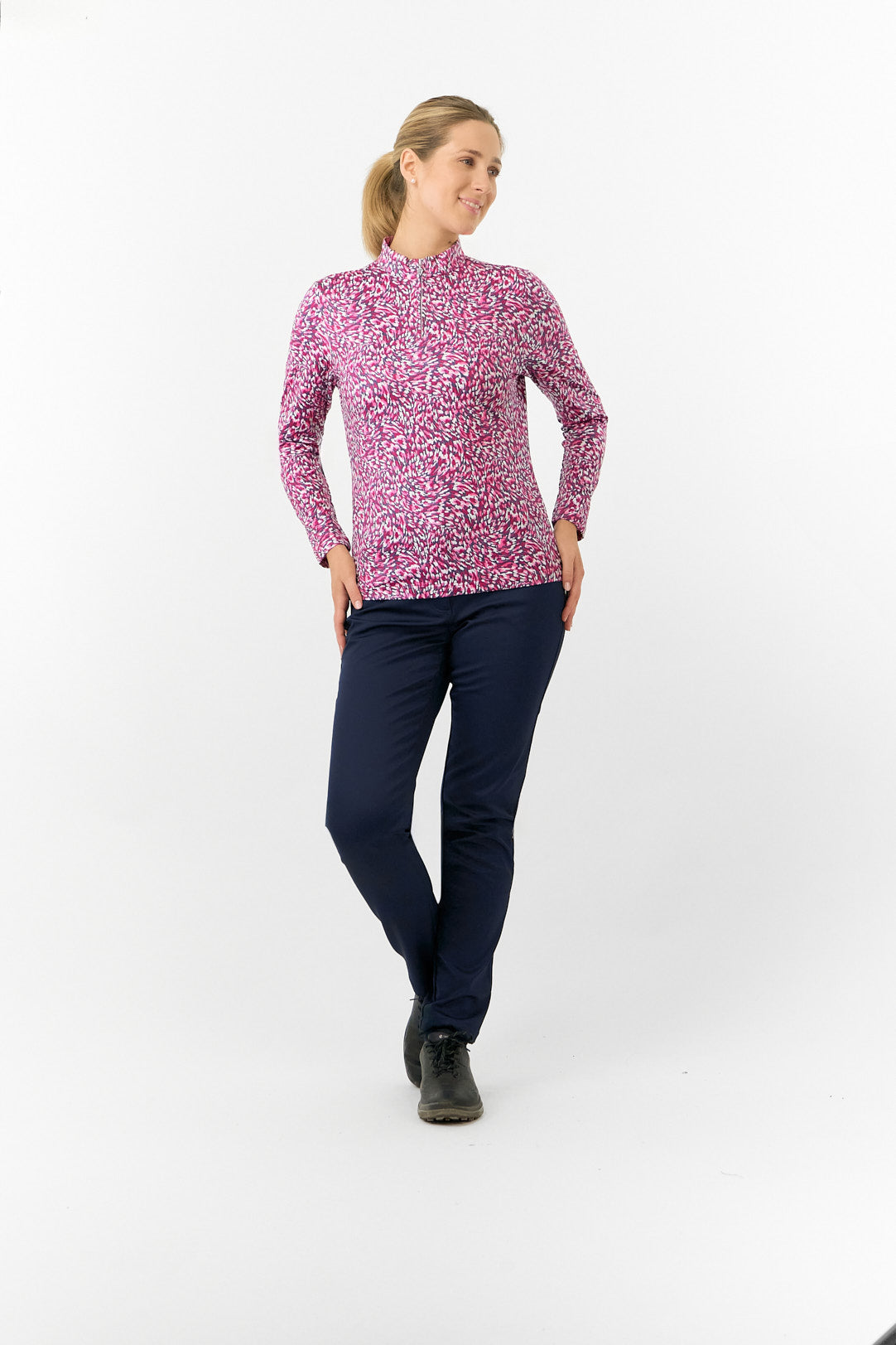 Pure Golf Ladies Arusha Long Sleeve Mid Layer Quarter Zip- Plum Ripple