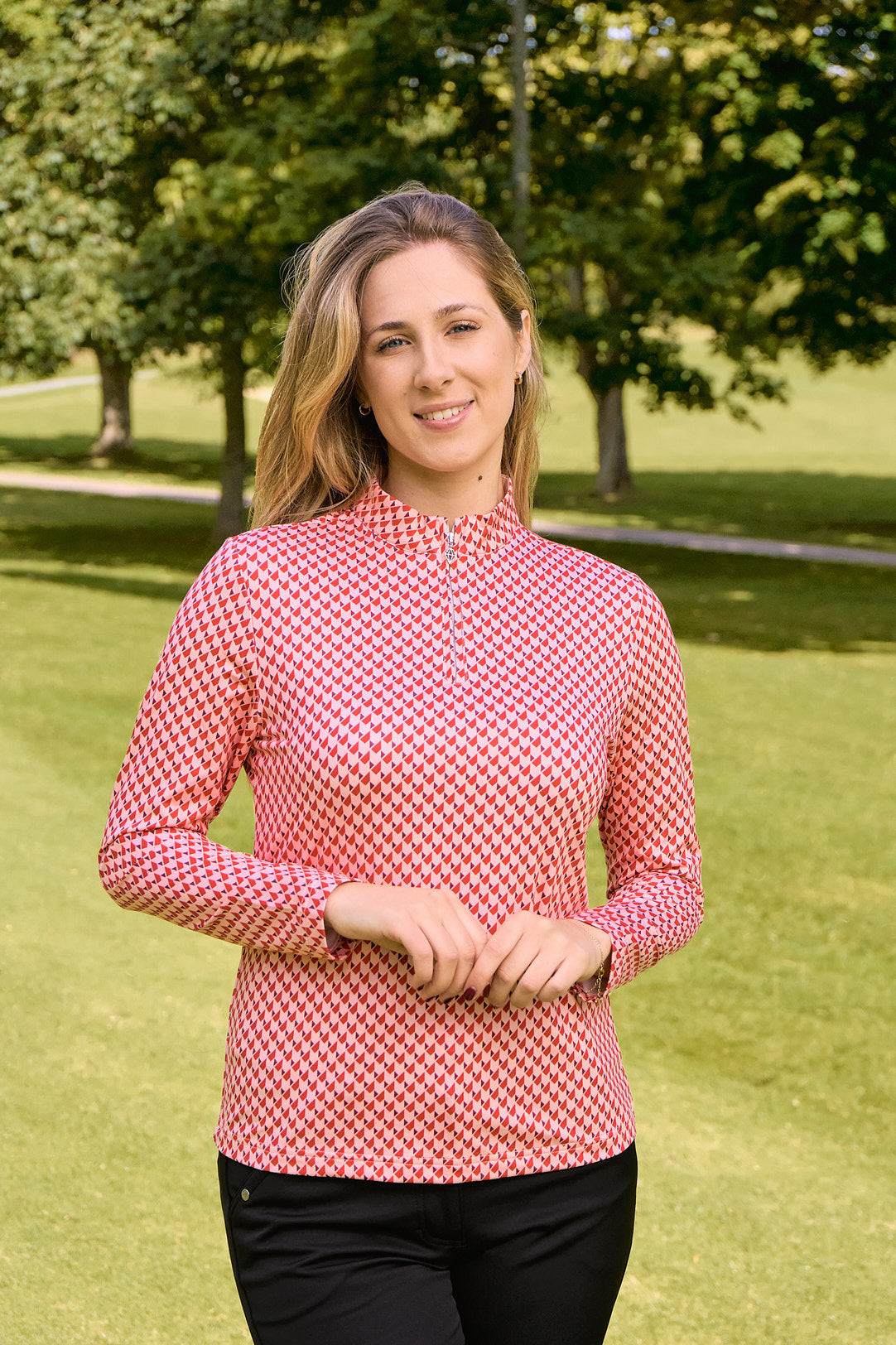 Geometric and graceful, Woven Chantilly blends soft pink, chilli red, and deep merlot in a playful yet polished pattern. Its repeating woven motif adds a vintage-inspired charm with contemporary edge — ideal for golfers who like their look as fresh as their swing.