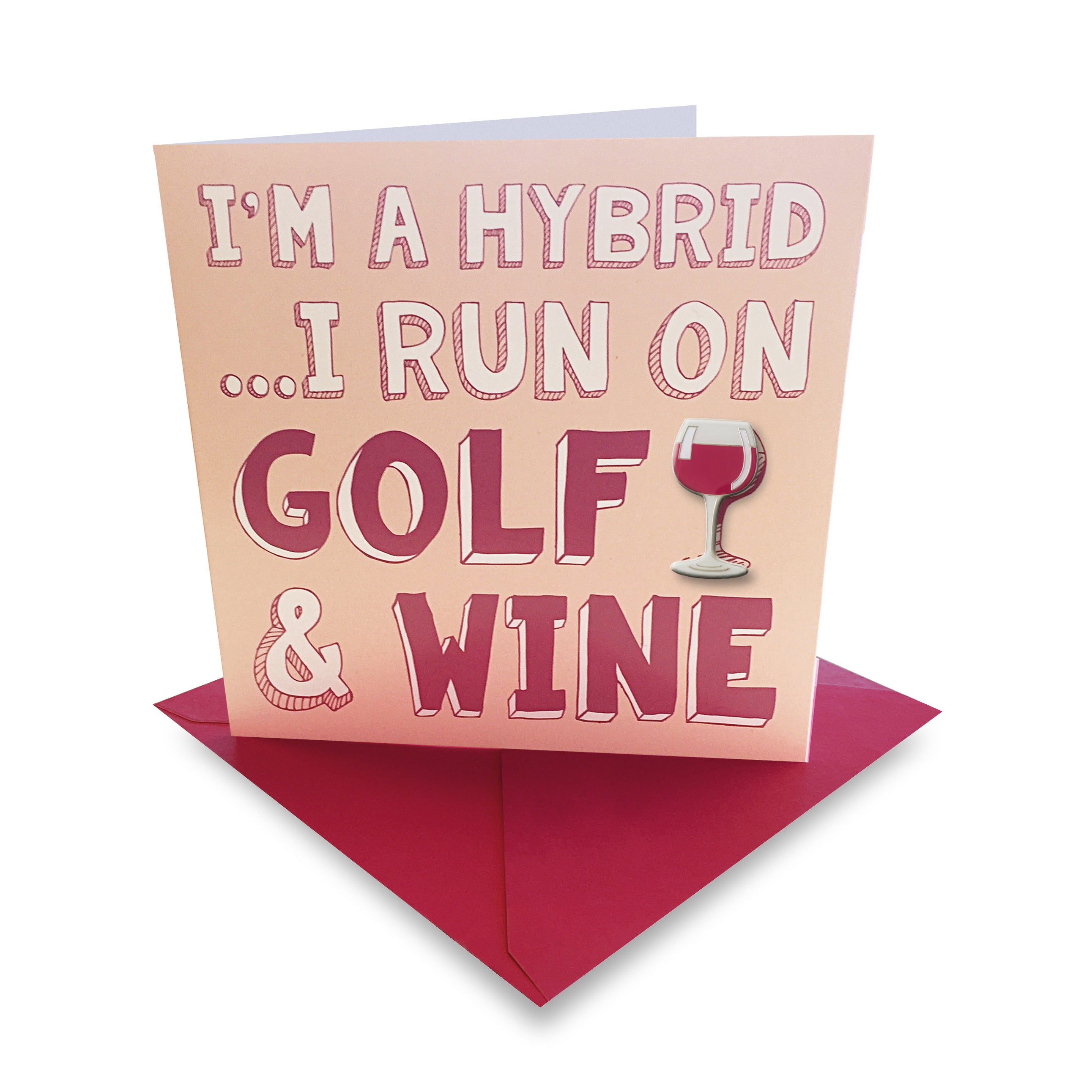 'I'm A Hybrid Wine - Pink' Golf Greeting Card- With Ball Marker Included