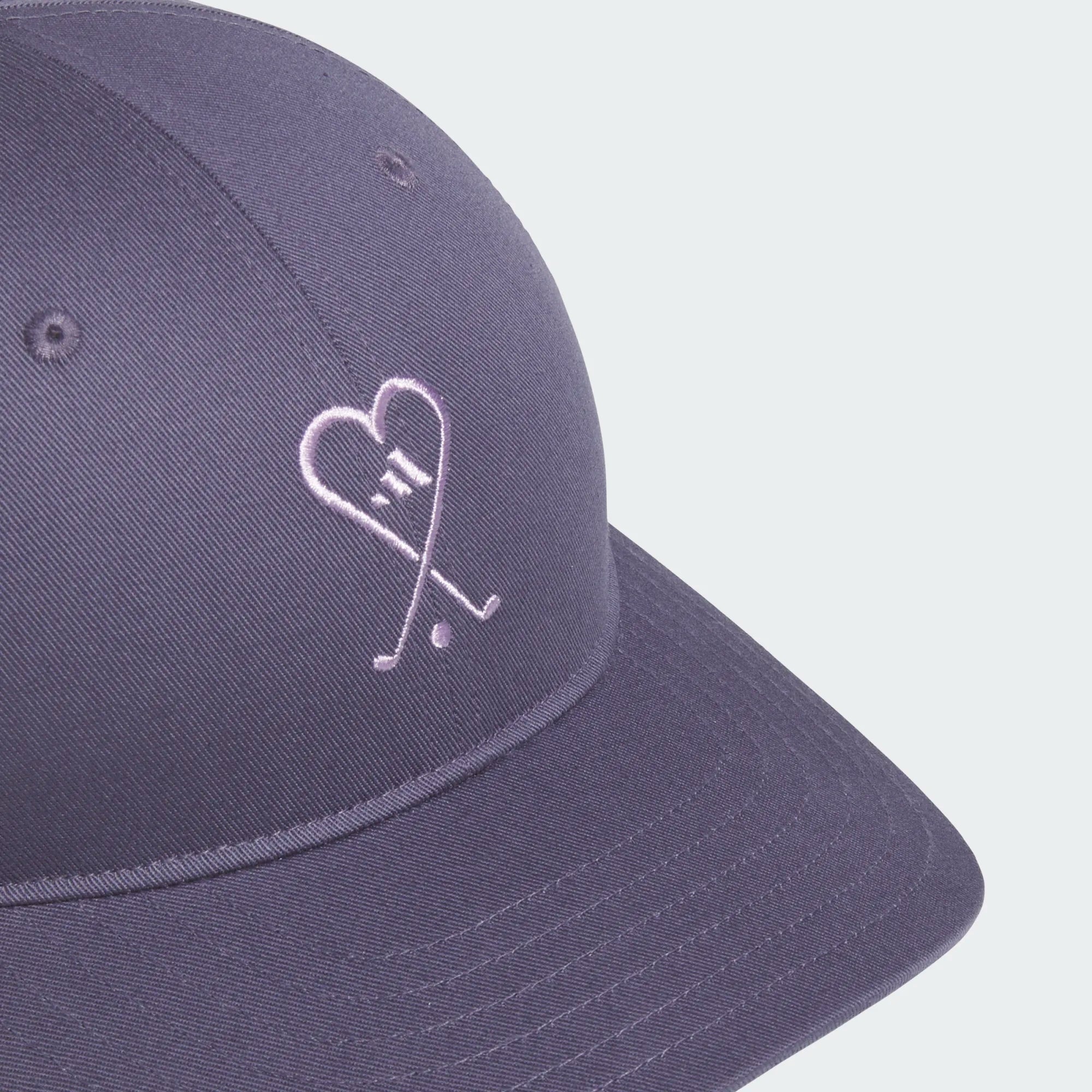 Elevate your golf attire with the Heart & Clubs Hat, designed specifically for women. This stylish cap features a direct embroidered heart and golf clubs logo on the front panel, adding a touch of charm to your game. Made with Cotton, it offers both comfort and a nod to versatility. Perfect for a day on the course, this hat combines performance and style seamlessly.