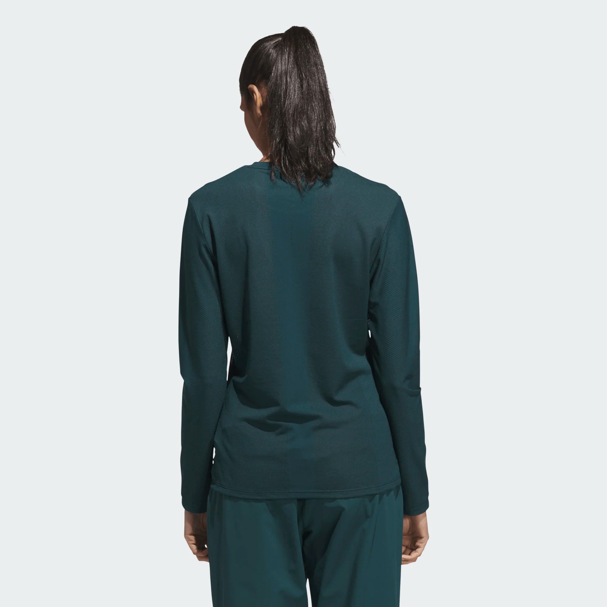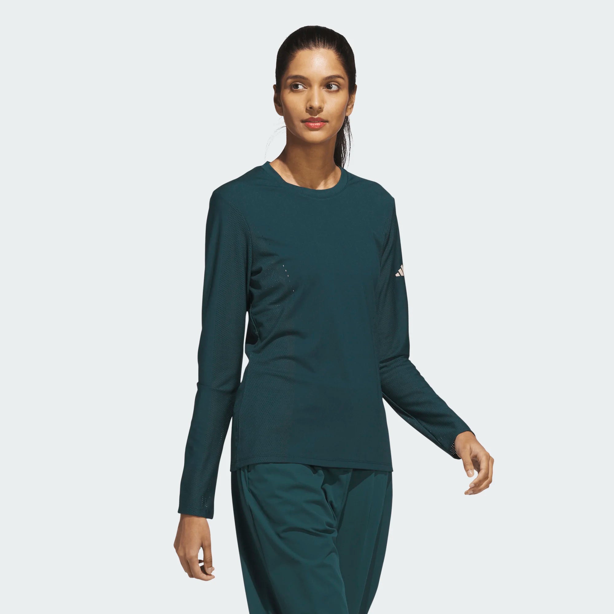Redefine your golf wardrobe with the Ultimate365 Tour Engineered Long Sleeve Slim Top for women. This top is designed to fit close to the body, offering a sleek and modern silhouette perfect for on-course performance. Made in part with recycled materials, it combines wearable innovation and technology, making it ideal for game changers and boundary breakers. Crafted from a blend of recycled polyester and Elastane, thisKnit Design construction ensures flexibility and comfort throughout your game.