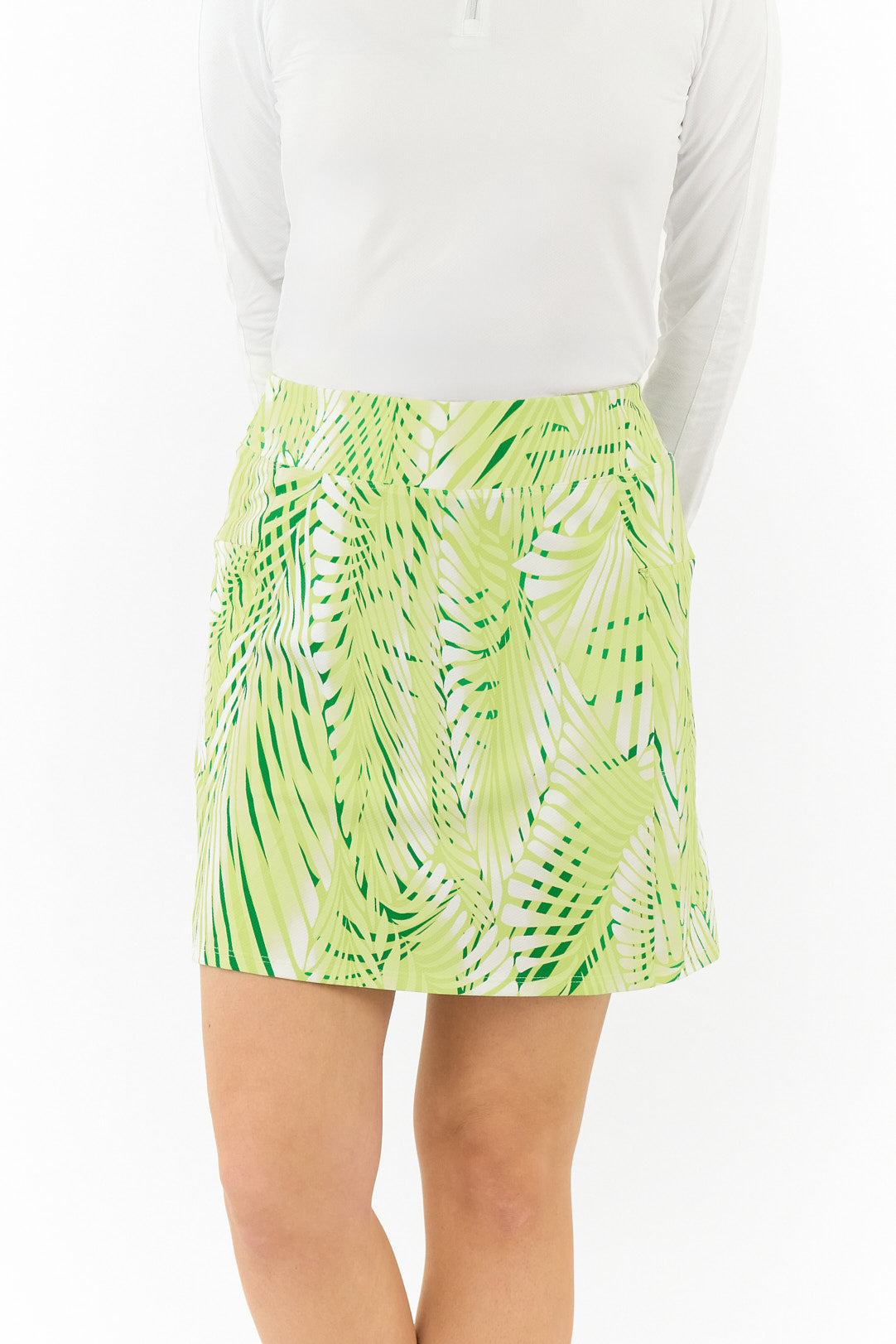 The Layla skort in lime from NVO blends femininity with sporty style, offering a chic look on the green along with unmatched comfort and functionality. Designed with UPF 50+ sun protection, this pull-on skort allows you to enjoy your game while staying shielded from harmful UV rays.