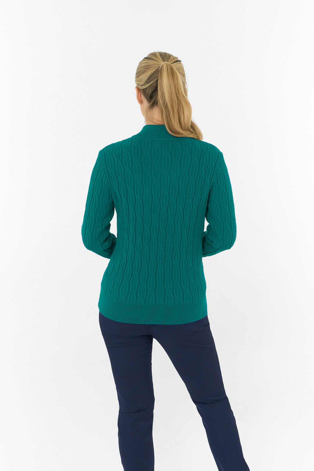 Classic Cable Knit: Featuring an intricate cable knit pattern, the Margot adds a rich, tactile dimension to your outfit, offering an elegant aesthetic that feels right at home on the most prestigious courses.
