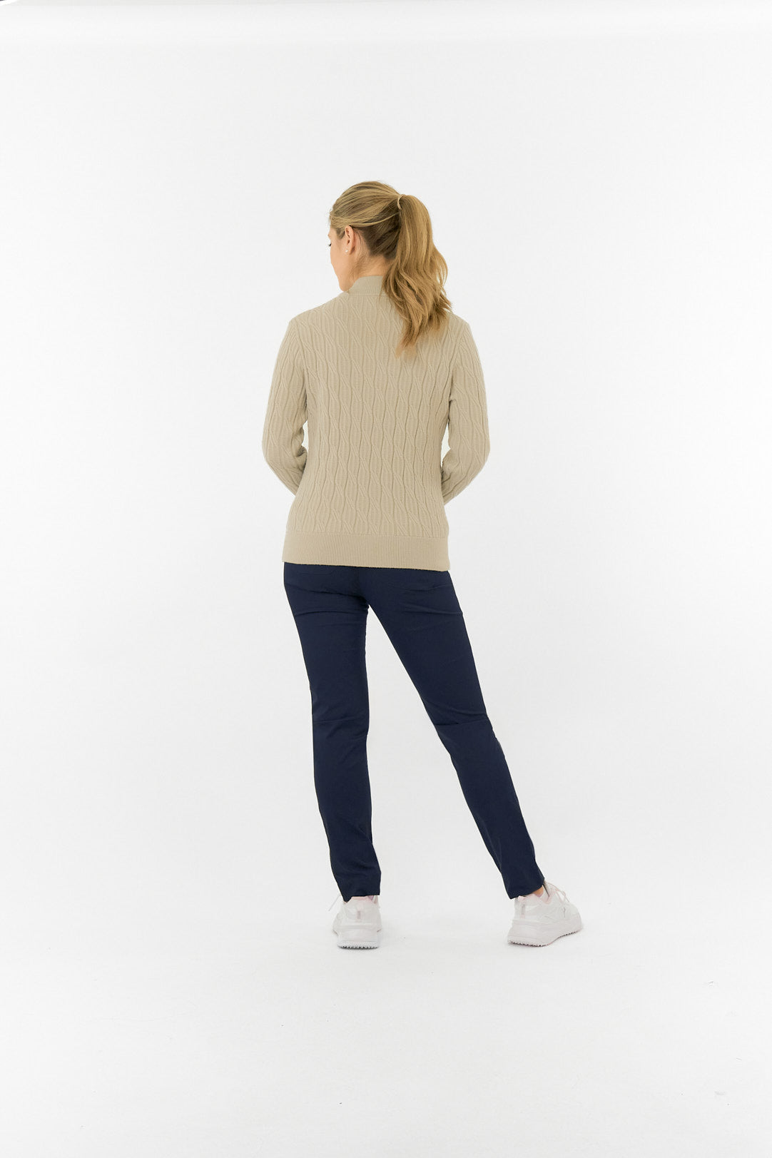 Classic Cable Knit: Featuring an intricate cable knit pattern, the Margot adds a rich, tactile dimension to your outfit, offering an elegant aesthetic that feels right at home on the most prestigious courses.