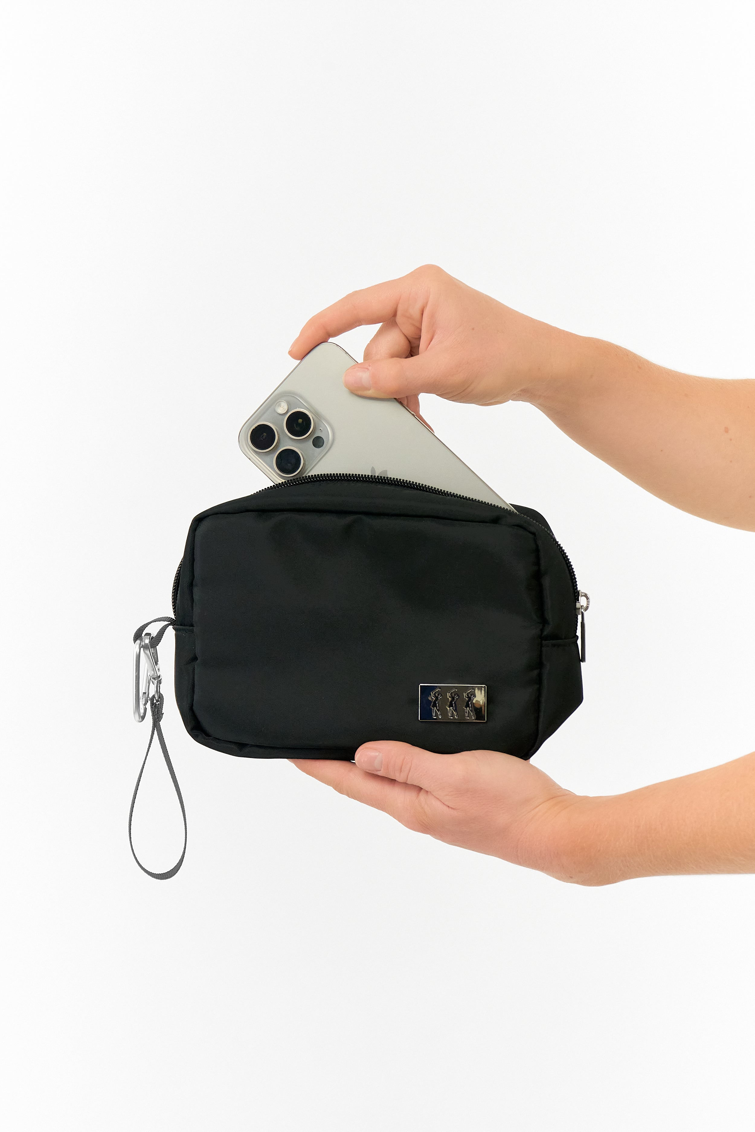 Indulge in a luxurious golfing experience with the Surprizeshop Ladies Golf Hand Bag in Black. Crafted with exquisite Lady Golfer fabric on the inside, this bag boasts a hand-enamelled Black lady golfer detail and a Silver zipper puller. The detachable hand strap and sturdy carabiner clip make it effortless to attach to your golf bag, ensuring functionality and sophistication. With its optimal size, this bag is ideal for organizing and accessing all your necessities.