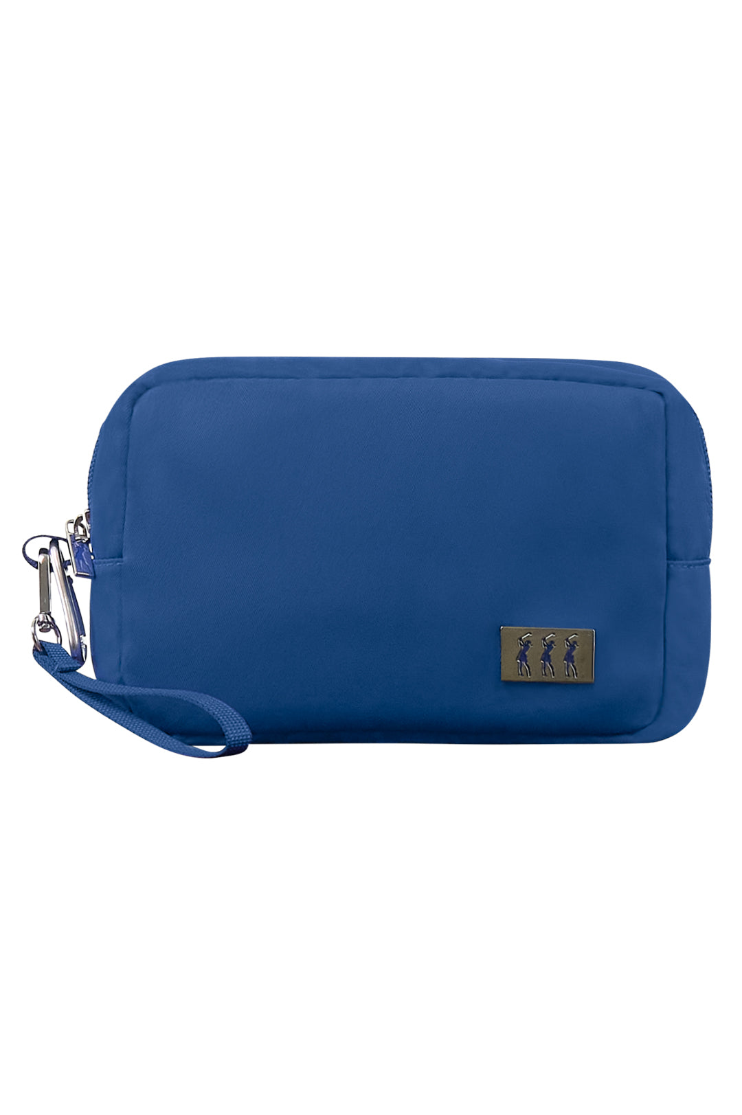 Surprizeshop Ladies Golf Hand Bag in Blue. An essential for any golfer's repertoire, this bag emanates an air of luxury and refinement. Expertly crafted with meticulous care, it features a stunning padded Lady Golfer fabric lining, hand enamelled blue lady golfer detail and zipper puller in Silver, detachable hand strap with clip, strong carabiner clip to attach to golf bag and is the perfect size for all phones. This bag seamlessly combines sophistication and practicality into an exquisite package and keeps all your personal and small items together.