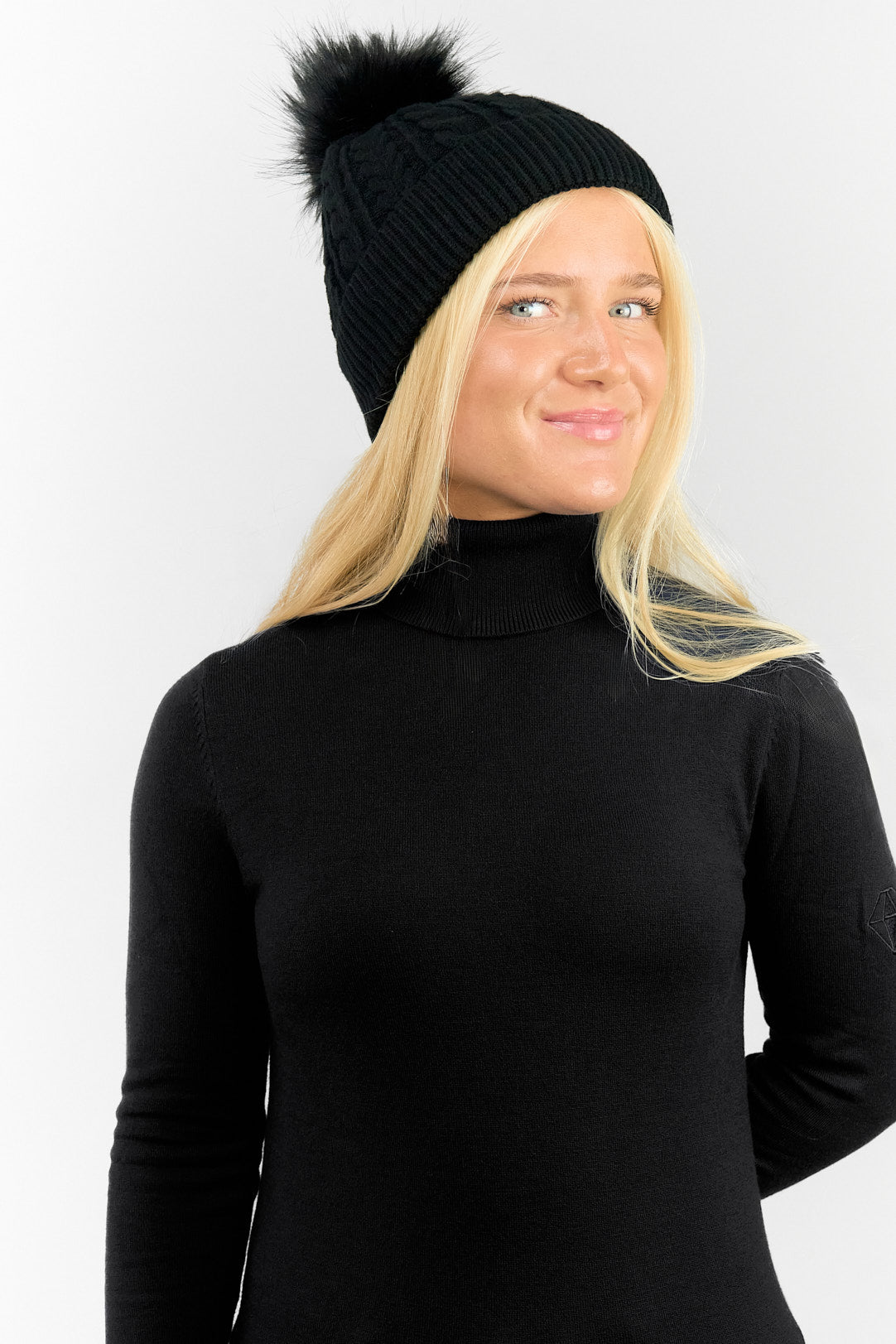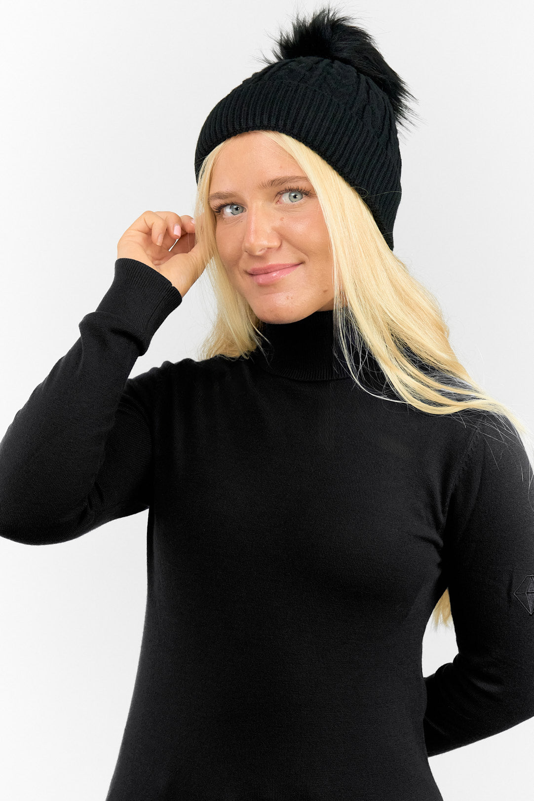 This waterproof bobble ladies golf hat from Surprizeshop is perfect for staying dry this Autumn/Winter. This versatile black colour makes the perfect addition and whether you're out on the course or on a winter walk you'll stay stylishly dry.  This hat has three layers - an inner waterproof layer plus a soft fleece lining which makes it warm and comfortable to wear and the knit as the outer layer. Detachable faux fur bobble.