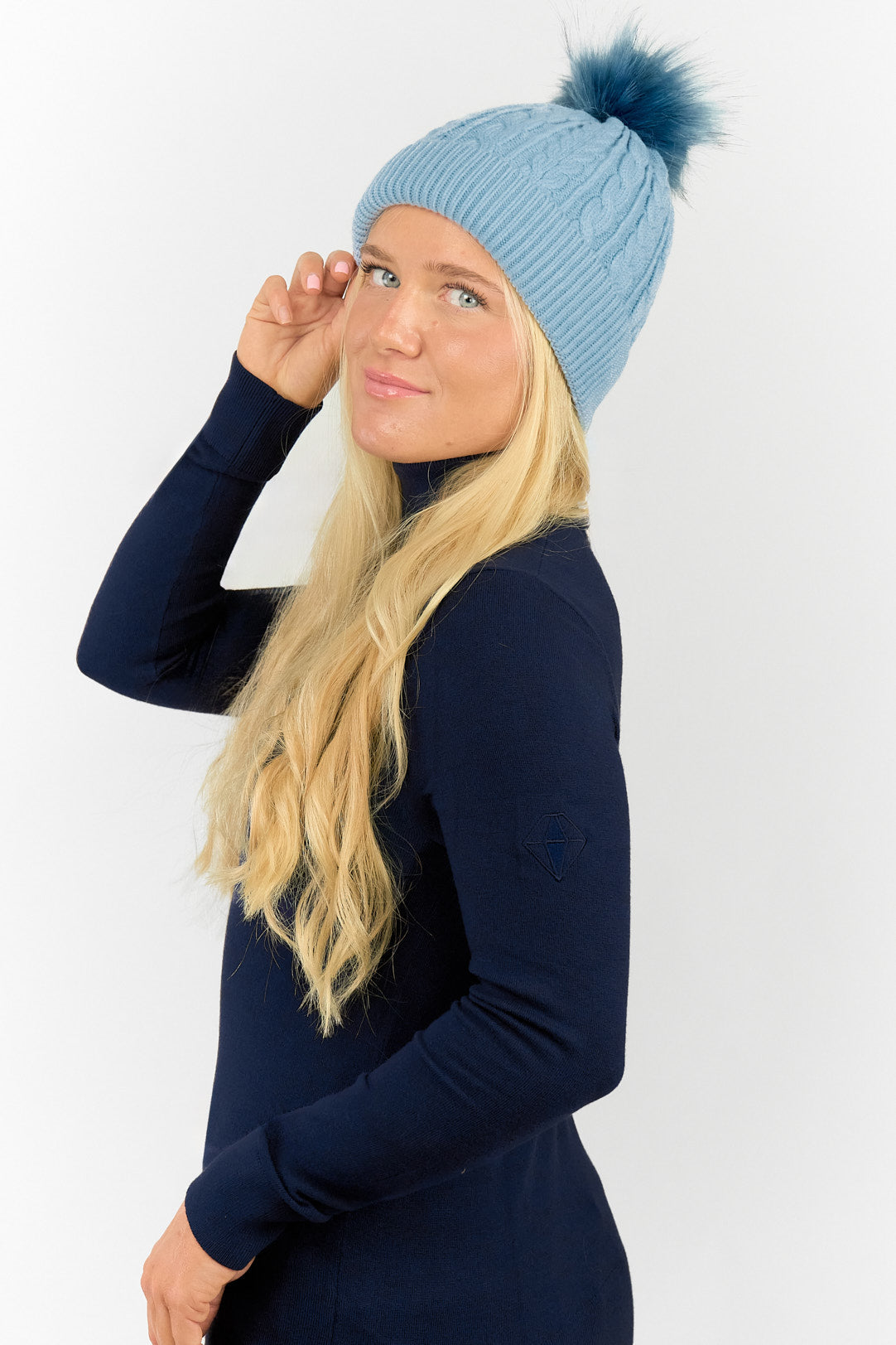 This waterproof bobble ladies golf hat from Surprizeshop is perfect for staying dry this Autumn/Winter. This versatile pastel blue colour makes the perfect addition and whether you're out on the course or on a winter walk you'll stay stylishly dry. This hat has three layers - an inner waterproof layer plus a soft fleece lining which makes it warm and comfortable to wear and the knit as the outer layer. Detachable faux fur bobble.